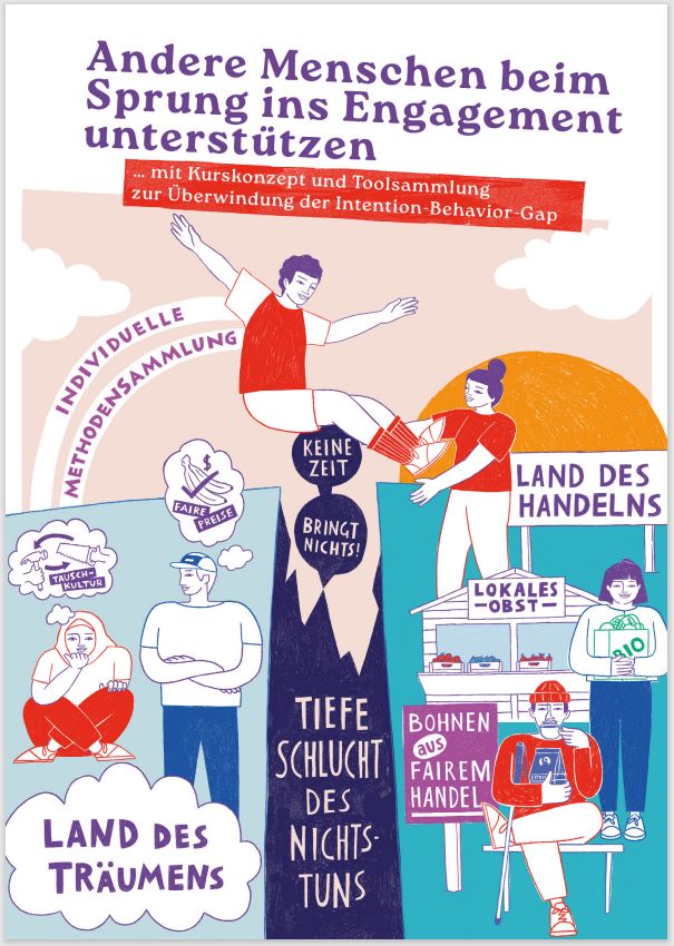 Die Broschüre richtet sich an Pädagog*innen, Trainer*innen und Multiplikator*innen in der Nachhaltigkeits- und Engagementbildung, die Menschen nachhaltig ins Handeln bringen möchten.