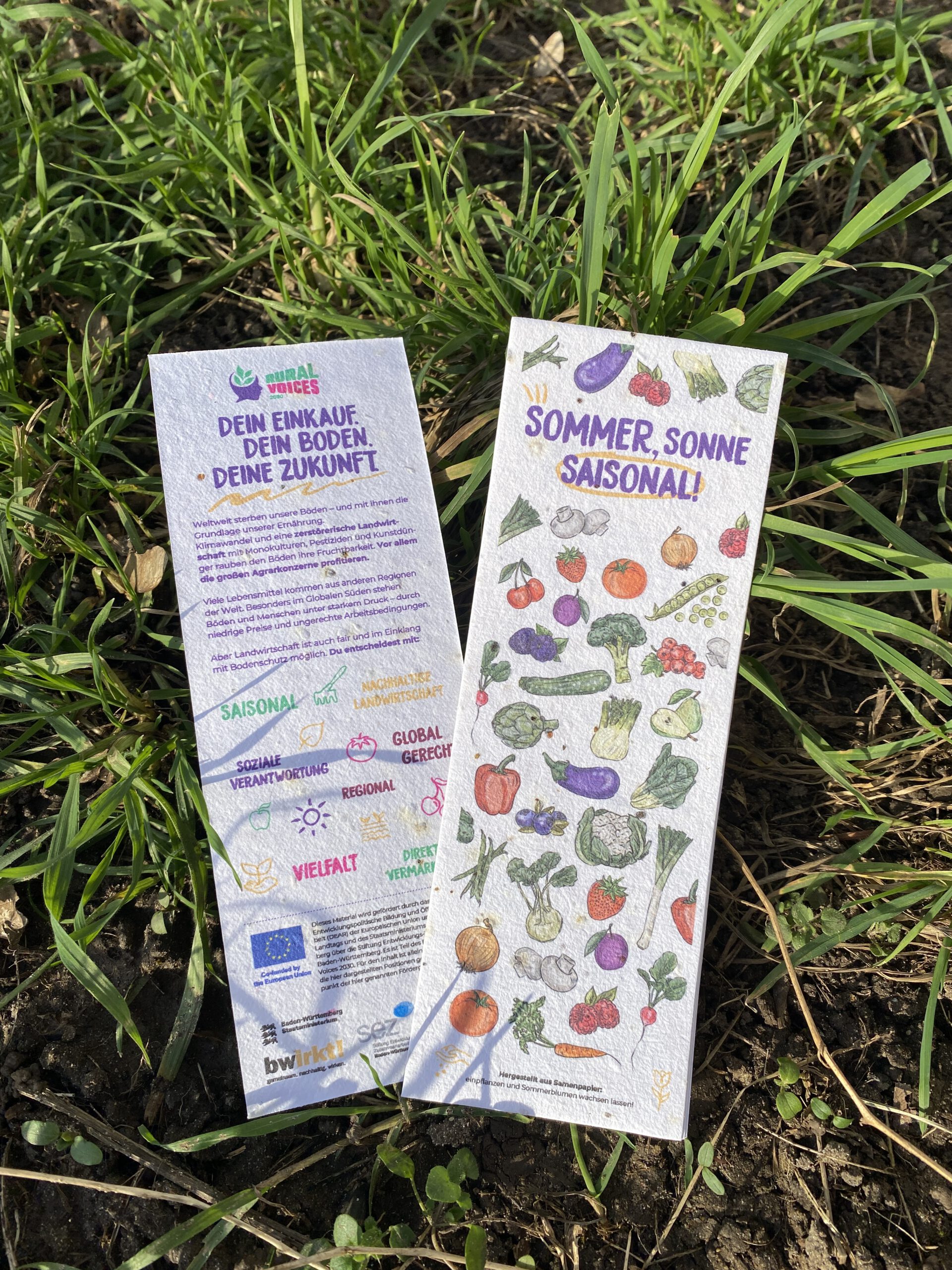 - Die Lesezeichen wurden auf Samenpapier produziert (Format 210 × 73 mm).