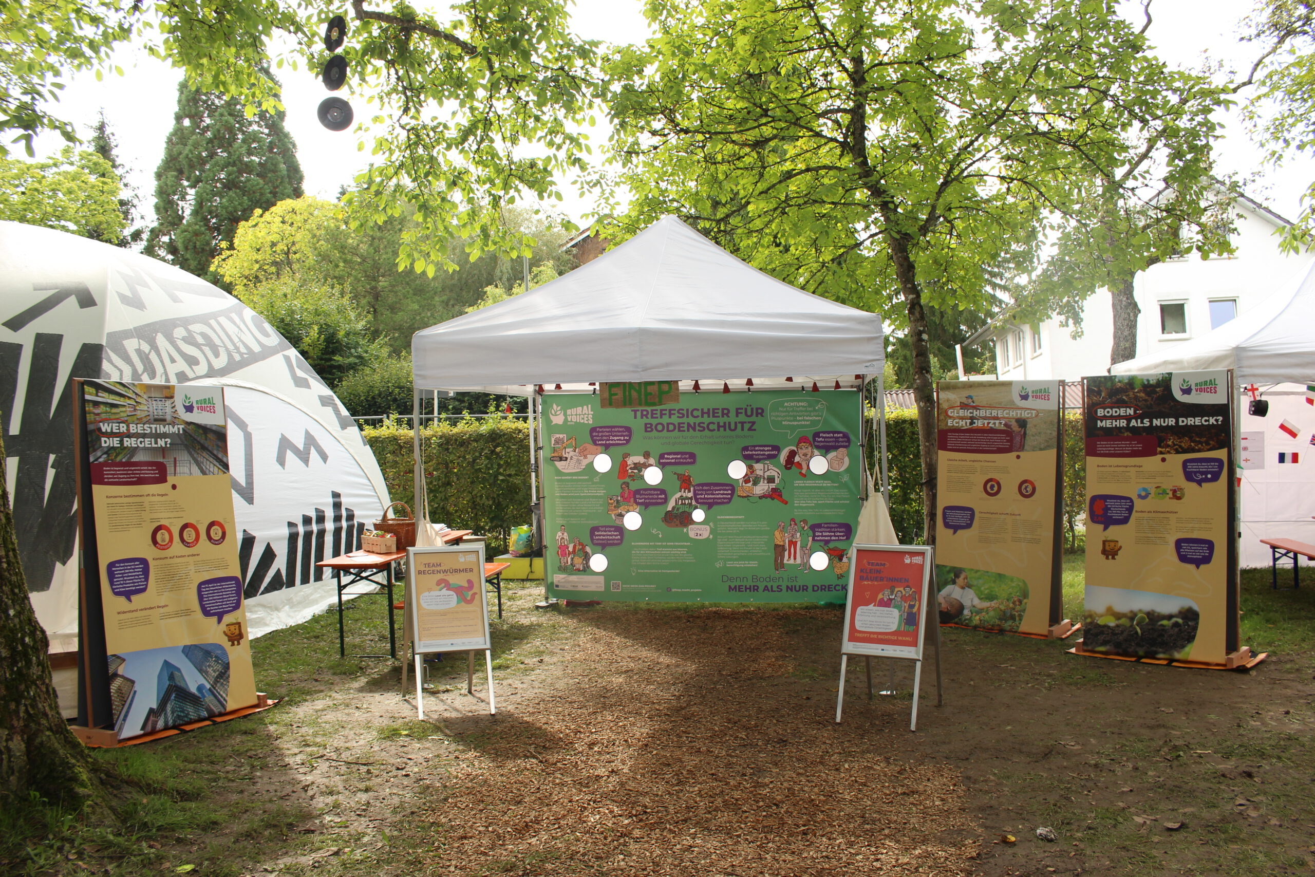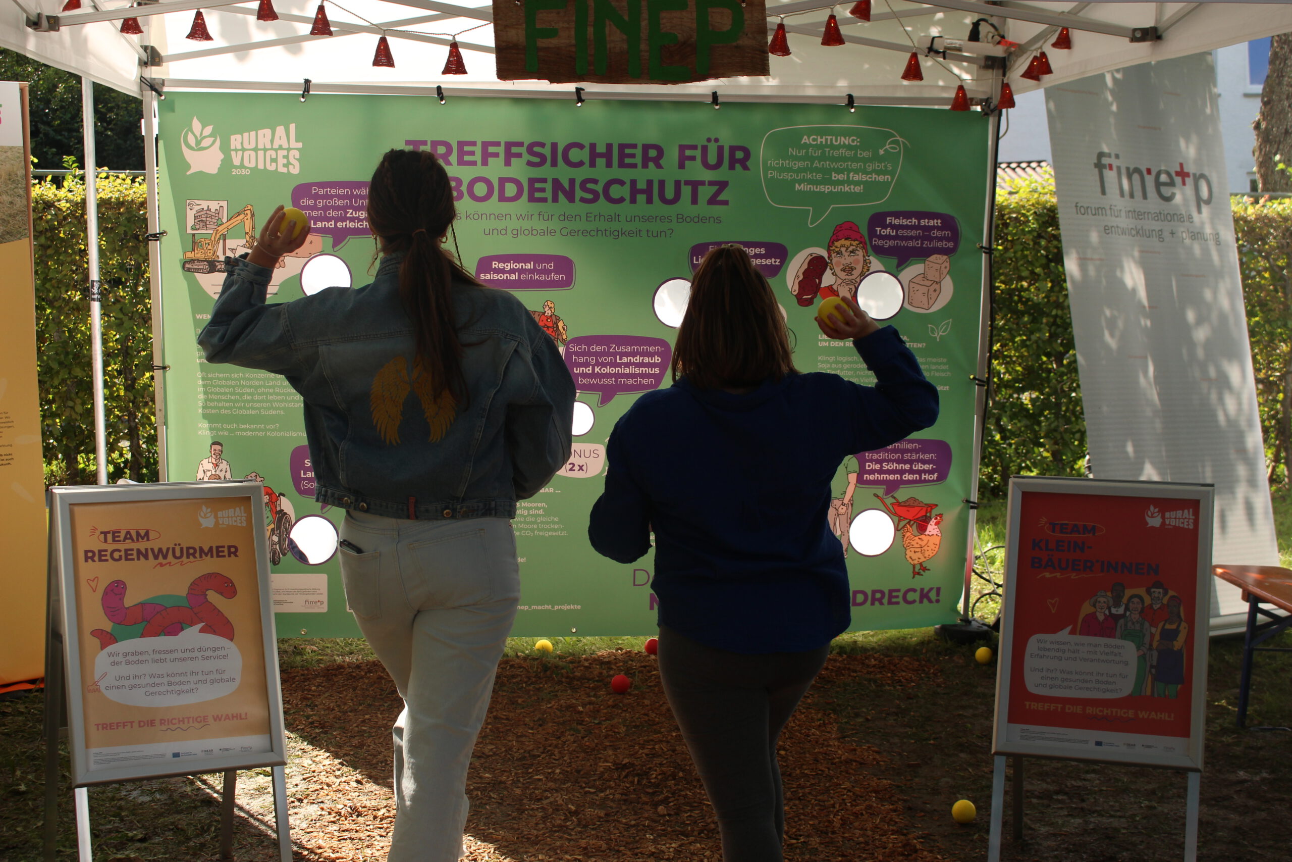 Auf einer Fläche von zwei mal drei Metern verbindet die Wurfwand spielerischen Wettbewerb mit Wissensvermittlung rund um das Thema Globaler Bodenschutz.